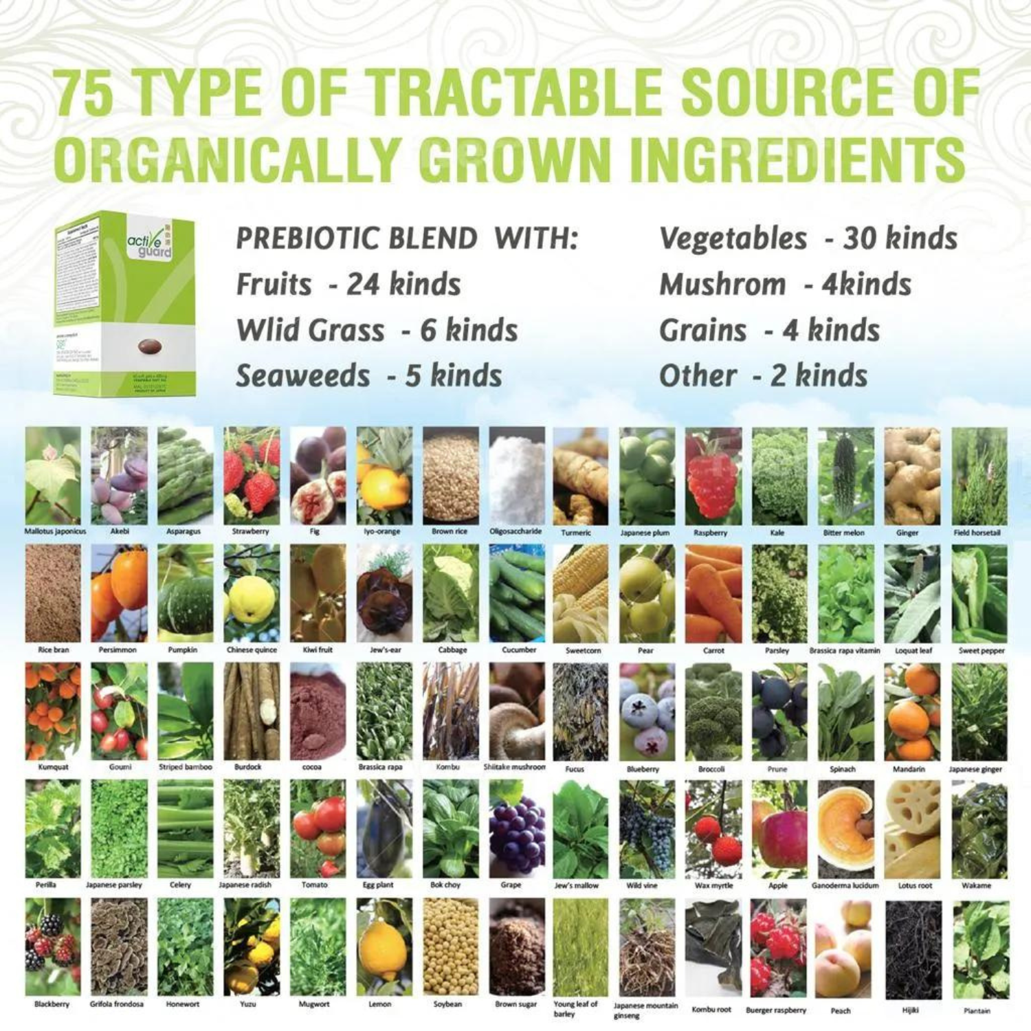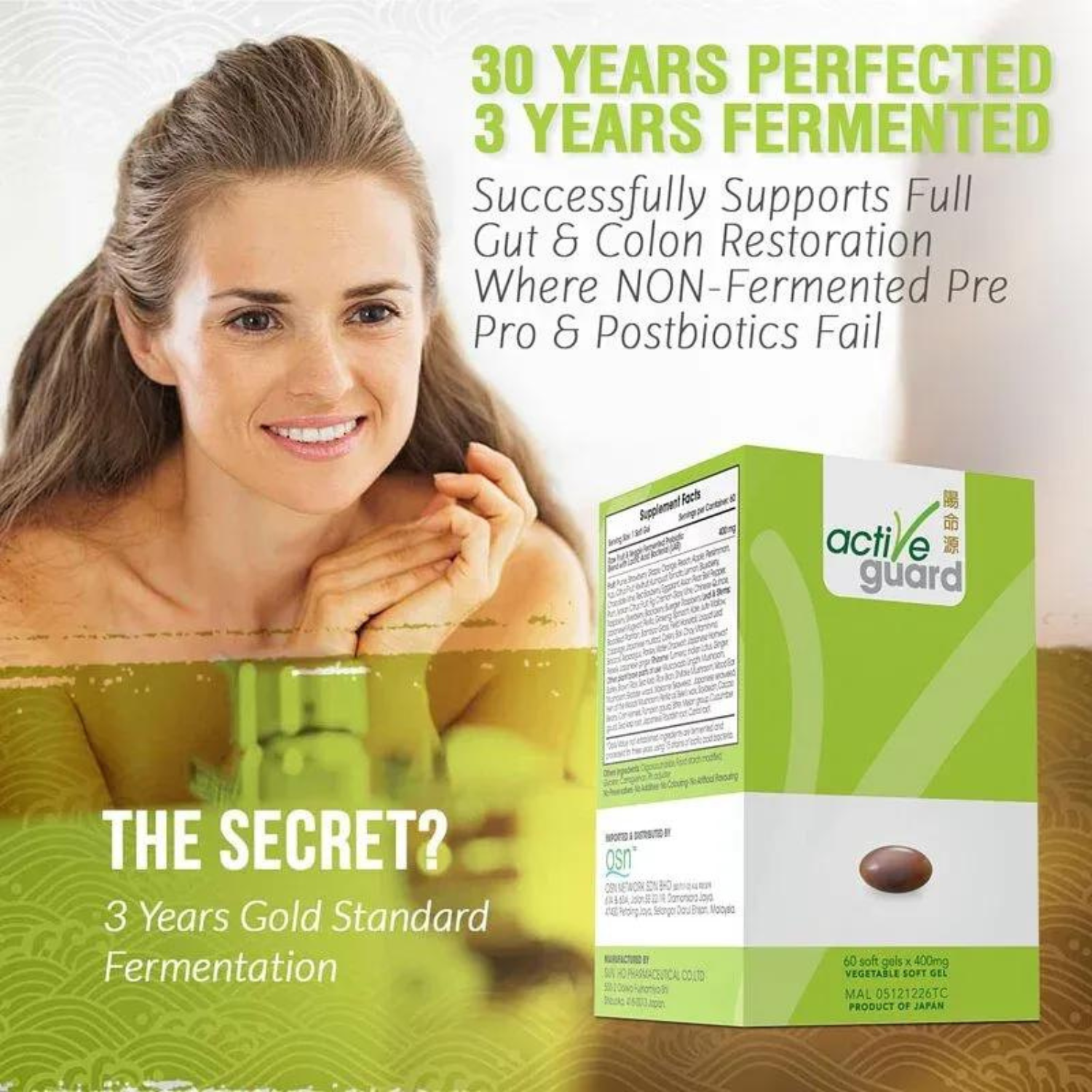 OSN Active Guard is a lactic acid bacteria and fermented probiotic encapsulated in a vegetable soft gel. Each soft gel contains 17 strains of friendly lactic acid bacteria and 75 different fruit and vegetable ingredients, harvested during the best season at peak nutritional value.