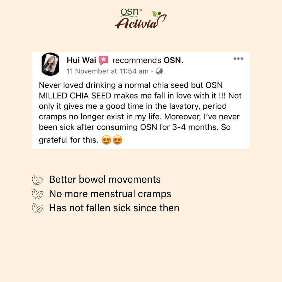 A modern essential superfood that benefits all ages. OSN Activia is our prebiotic micro-milled chia seed drink, naturally sweetened with Monk Fruit (Luo Han Guo). Only takes 3 minutes to prepare, but boosts your energy and mood for the rest of the day.